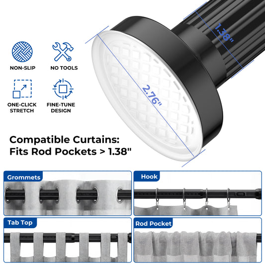 AZ19L ALLZONE Adjustable Tension Curtain Rod, 40-121 inches, Heavy Duty Curtain Rods No Drilling, Anti-Slip Tension Rod for Window, Shower, Outdoor & Patio, Easy to Install, 1.26In Diamete