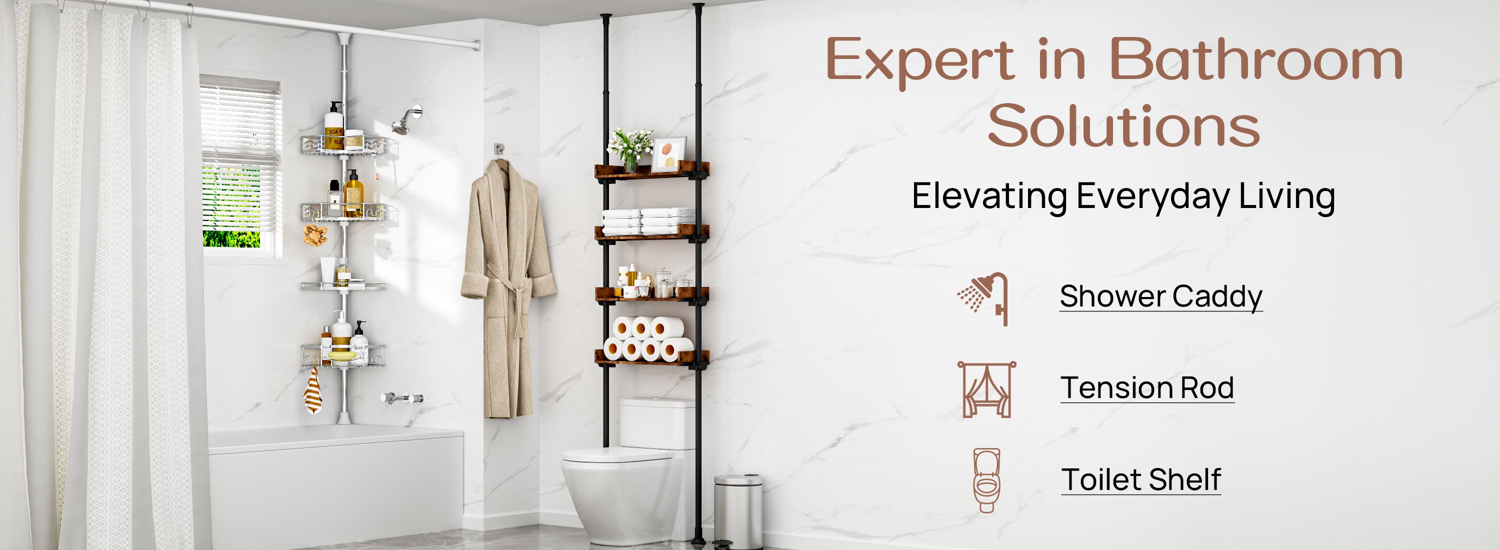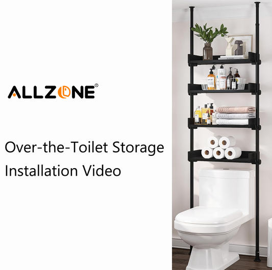 AZ05 4-Tier Over the Toilet Storage with Adjustable Shelves,Tension Mount, Constructed of Metal Poles and Wood Shelves, Pole Fits 92 to 116 Inch Height
